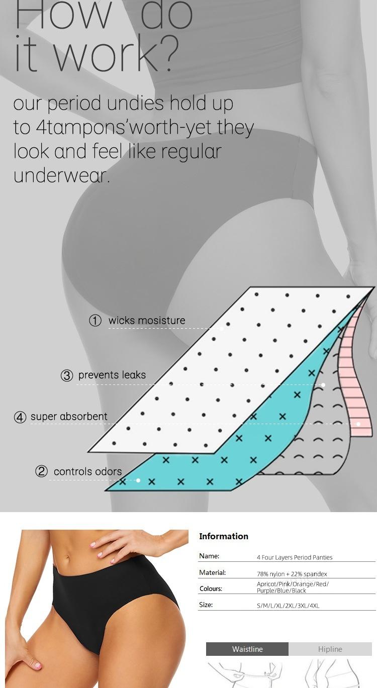 Factory 4 Four Layers 55 ml High Quality Plus Sizes Wholesale Leak Proof High Waist Seamless Underwear Period Panties for Women